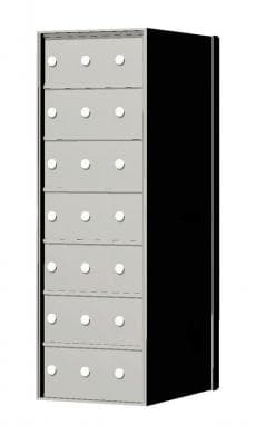 This 1700 Series module contains 21 usable mailboxes, configured 7 compartments high and 3 wide, each 5” x 4” and 15 ½” deep. Rear-loading, an open back makes for easily accessible use and secure private mail distribution. Standard mailboxes are available in Clear Anodized Aluminum. Please contact us for specific details on prices.