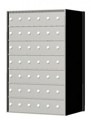 One of the best options in private use horizontal mailboxes for large multi-tenant buildings, this 42-door unit is organized 7 compartments high by 6 wide, each mailbox unit measuring 5” x 4” with a depth of15 ½”. The 1700 Series horizontal mailboxes are for indoor use only, constructed from all-aluminum materials for a high-quality finish. Each module comes completely assembled with a Clear Anodized Aluminum finish. Customized mailbox compartments are also available for an upcharge contact us for specific details on other prices for configurations meeting your unique needs.