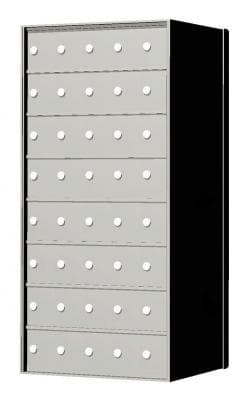 Standard 40-door mailbox units are open-backed, allowing for easy accessibility by personnel distributing private mail. This horizontal mailbox comes completely assembled in a configuration of 8-high x 5-wide and compartment dimensions of 5” high x 4” wide x 15 ½” deep. All standard mailbox units come in a Clear Anodized Aluminum finish. For another upcharge, commercial master locks and customizable compartments are also available.