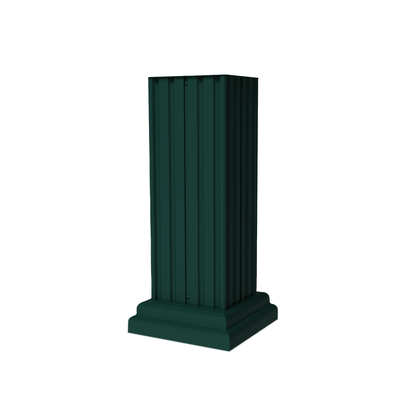This classic decorative pedestal cover is designed to fit 8 door and 12 door cluster box units. Compatible with many F Series cluster mailboxes, this tall pillar pedestal cover adds fashion to your neighborhood quickly and easily with little to no hardware. Weatherproof powdercoat finishes are available in sandstone, black, dark bronze, postal gray, forest green and white to match or compliment your existing cluster mailbox. This decorative cluster mailbox accessory is made with the highest quality materials to ensure a long-lasting decorative option. The decorative pedestal measures at a height of 28”, a width of 12.5625”, and a depth of 12.5625”. For complimentary decorative accessories and added aesthetic appeal, try the classic crown molding roof cap.