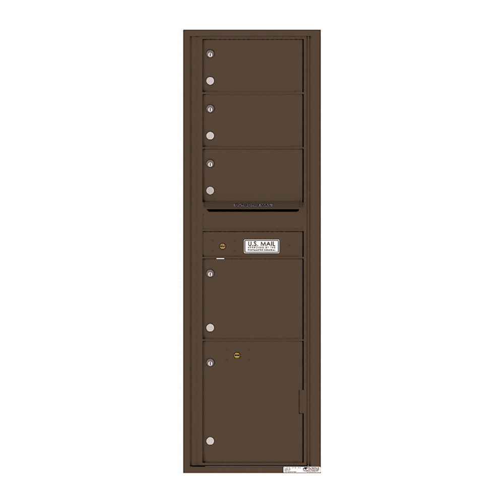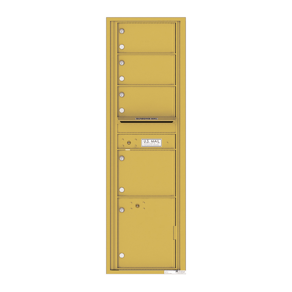 This single stack 4C versatile™ mailbox from US Mail Supply has four tenant doors, one outgoing mail slot, and one parcel locker. At 56 ½” tall and 17 ½” wide, this 4C Versatile mailbox is standard 16-door high. USPS approved, this front-loading apartment mailbox is ideal for multi-unit facilities.