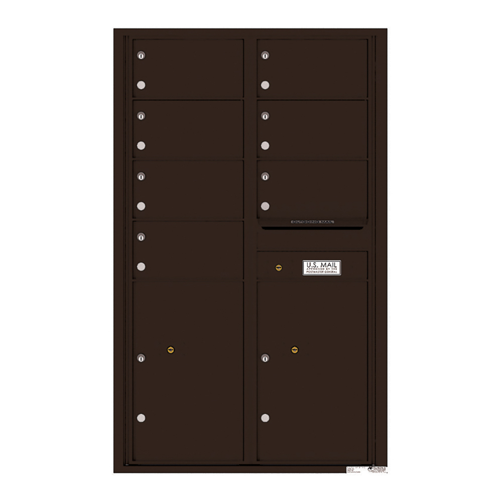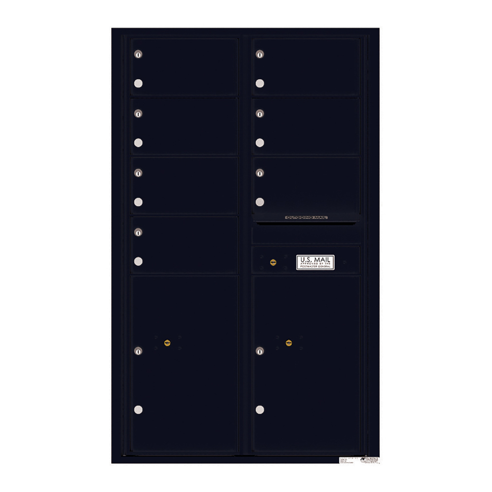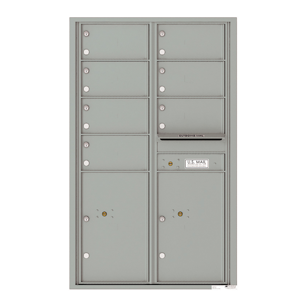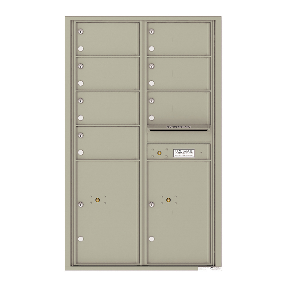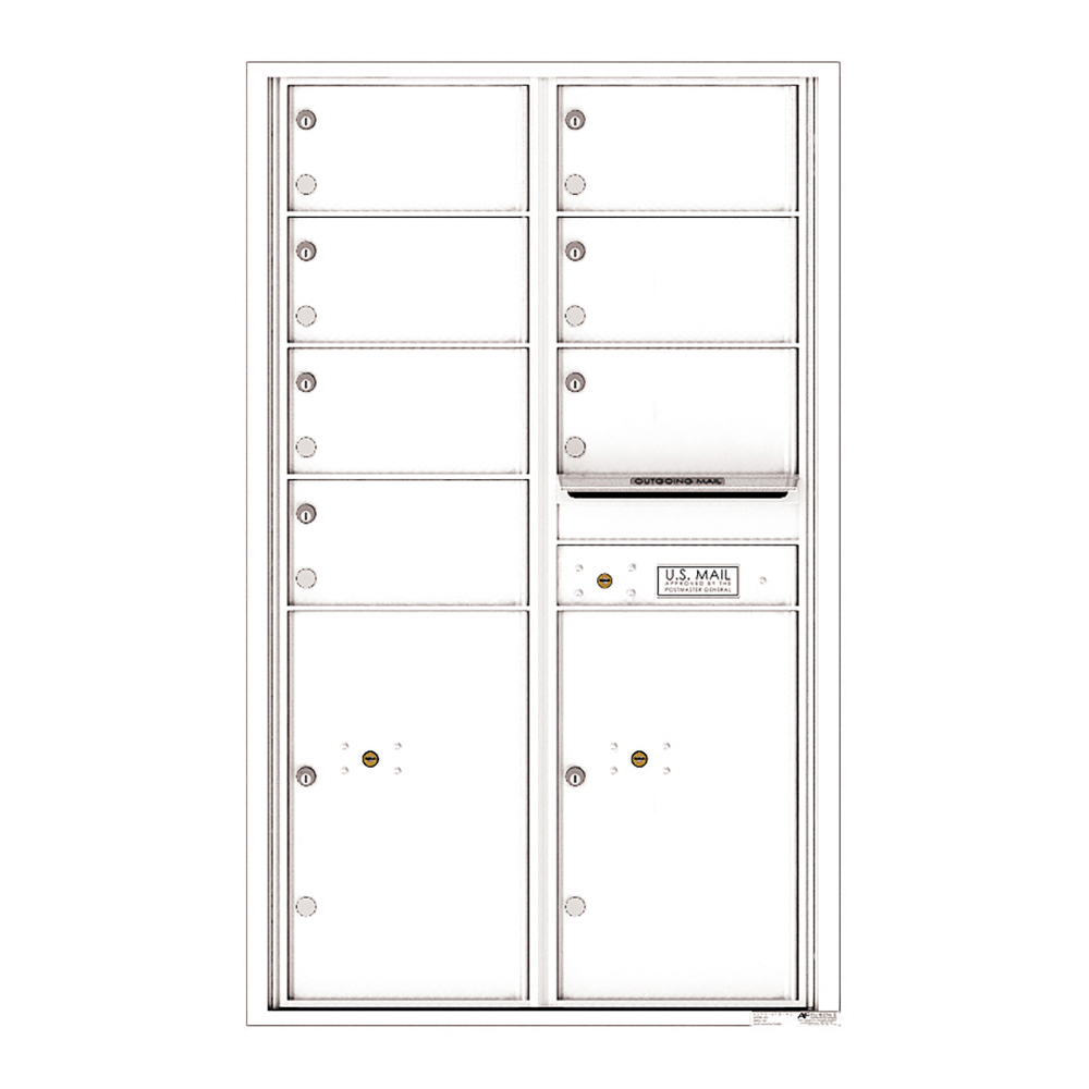 The 7 Tenant Mailbox unit in the versatile™ Series 4C Horizontal Mailbox line offers spacious double-high tenant doors in a double column module with two secure parcel lockers. The front-loading design with interlocking doors prevents prying and ensures convenience for postal workers delivering mail to multiple residents.