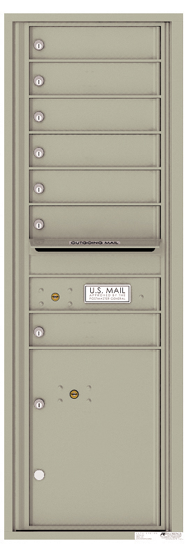 The 7 Tenant Mailbox unit in the versatile™ Series 4C Horizontal Mailbox line offers the largest number of tenant doors in a single column module with a secure parcel locker. The front-loading design with interlocking doors prevents prying and ensures convenience for postal workers delivering mail to multiple residents.