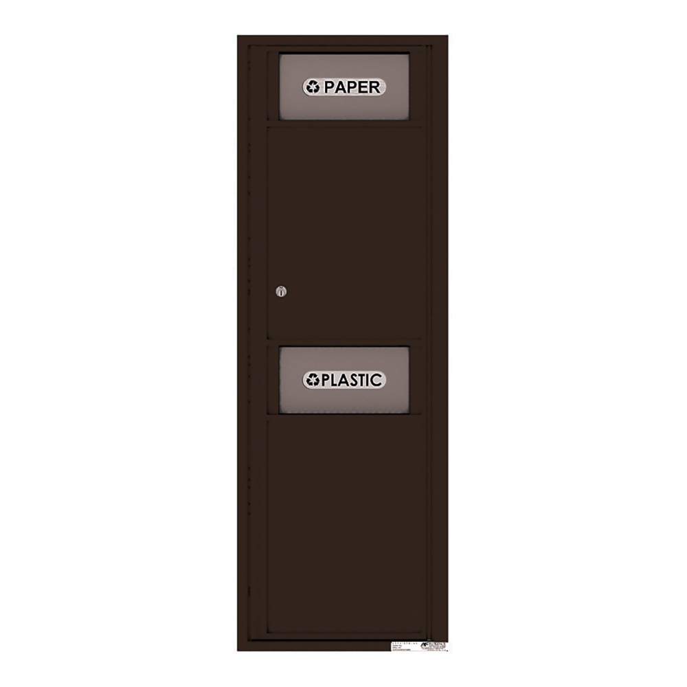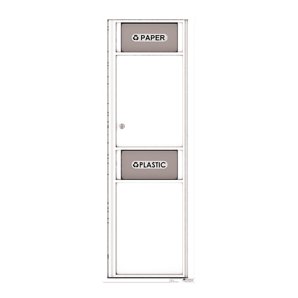 Get versatile™ Trash/Recycling Bins to encourage a clean residential area. Comprised of recycled materials with sturdy aluminum and stainless steel, they offer an eco-friendly yet durable option for disposal. The bins conveniently include pre-printed or customizable decals for easy sorting. Flexibility in installation allows three mounting options: recessed, surface, or pedestal. Available in several powder-coat finishes from the versatile™ 4C Mailbox line, the bins will match well with your mail center.