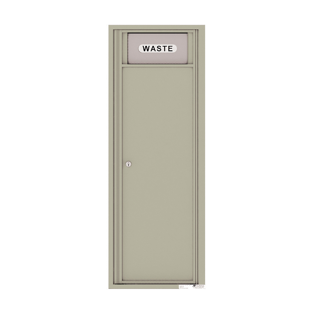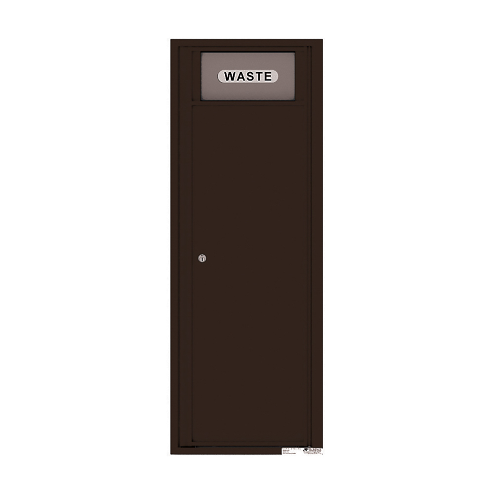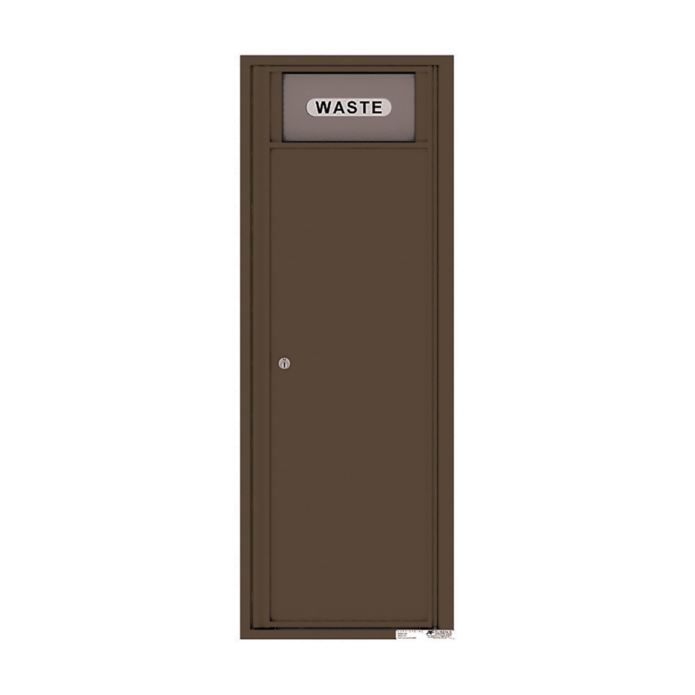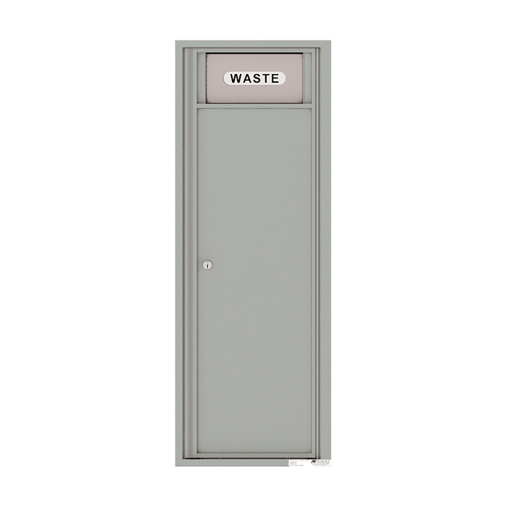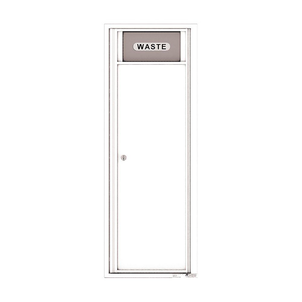 - Choose from a variety of door flap decals to suit your needs, such as “WASTE”, “PAPER”, “PLASTIC”, “GLASS”, “TRASH” or custom (up to 12 characters) – all at no extra charge. Door flap comes standard in brushed stainless steel, or may be powdercoated to match the bin’s exterior