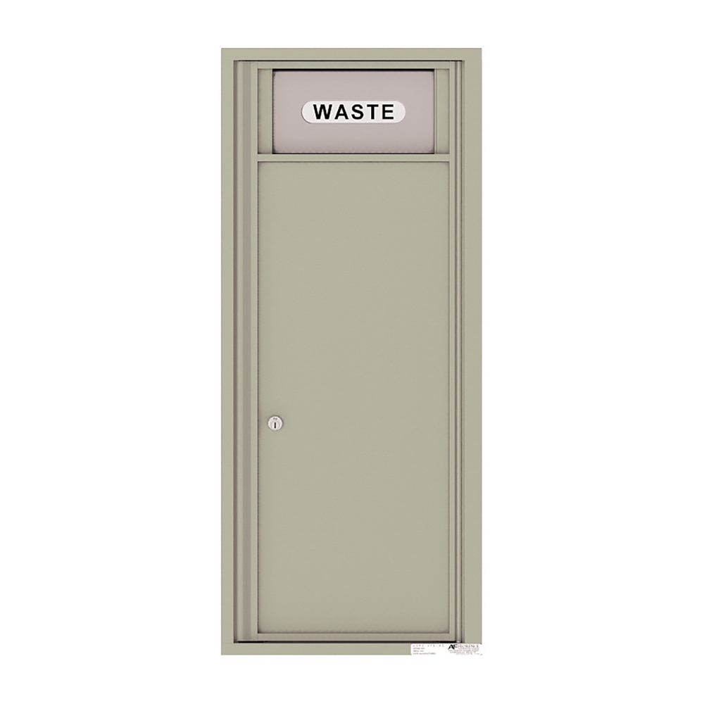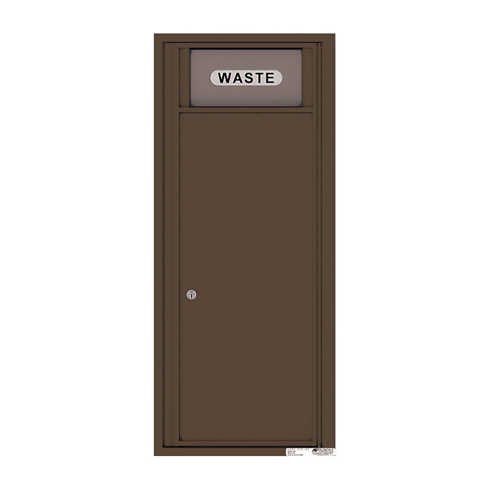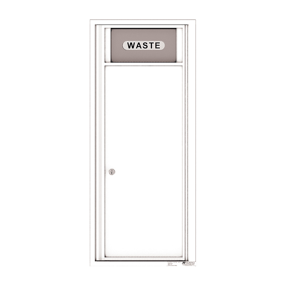 - Choose from a variety of door flap decals to suit your needs, such as “WASTE”, “PAPER”, “PLASTIC”, “GLASS”, “TRASH” or custom (up to 12 characters) – all at no extra charge. Door flap comes standard in brushed stainless steel, or may be powdercoated to match the bin’s exterior