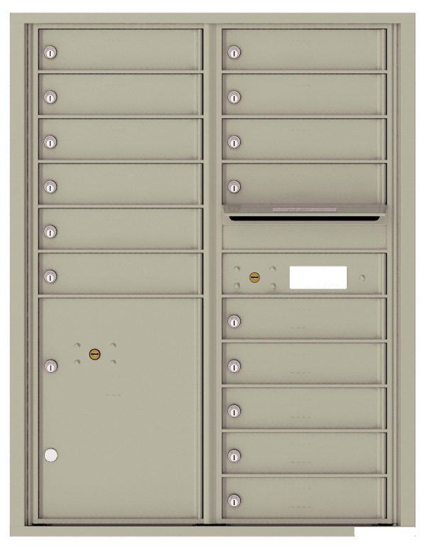 This 4C versatile™ mailbox from US Mail Supply holds fifteen tenant slots and one parcel locker, perfect for an apartment, army base, large office building, or campus dormitory. Easily mounted on any indoor wall, eleven-door high fifteen tenant 4C horizontal mailboxes feature twenty standard size (3.25” high) tenant doors, one extra-large (17" high) parcel locker, and one outgoing mail slot. The 4C locking pre-USPS approved mailbox is available in front loading style only.