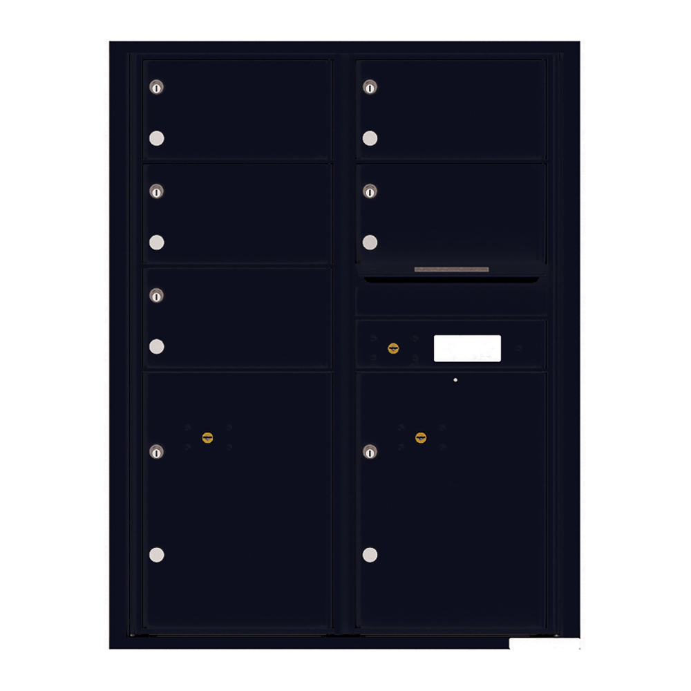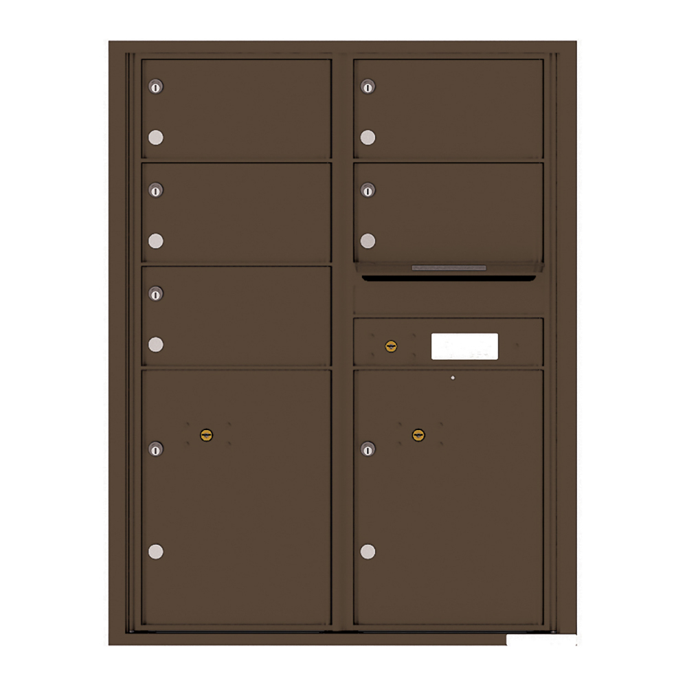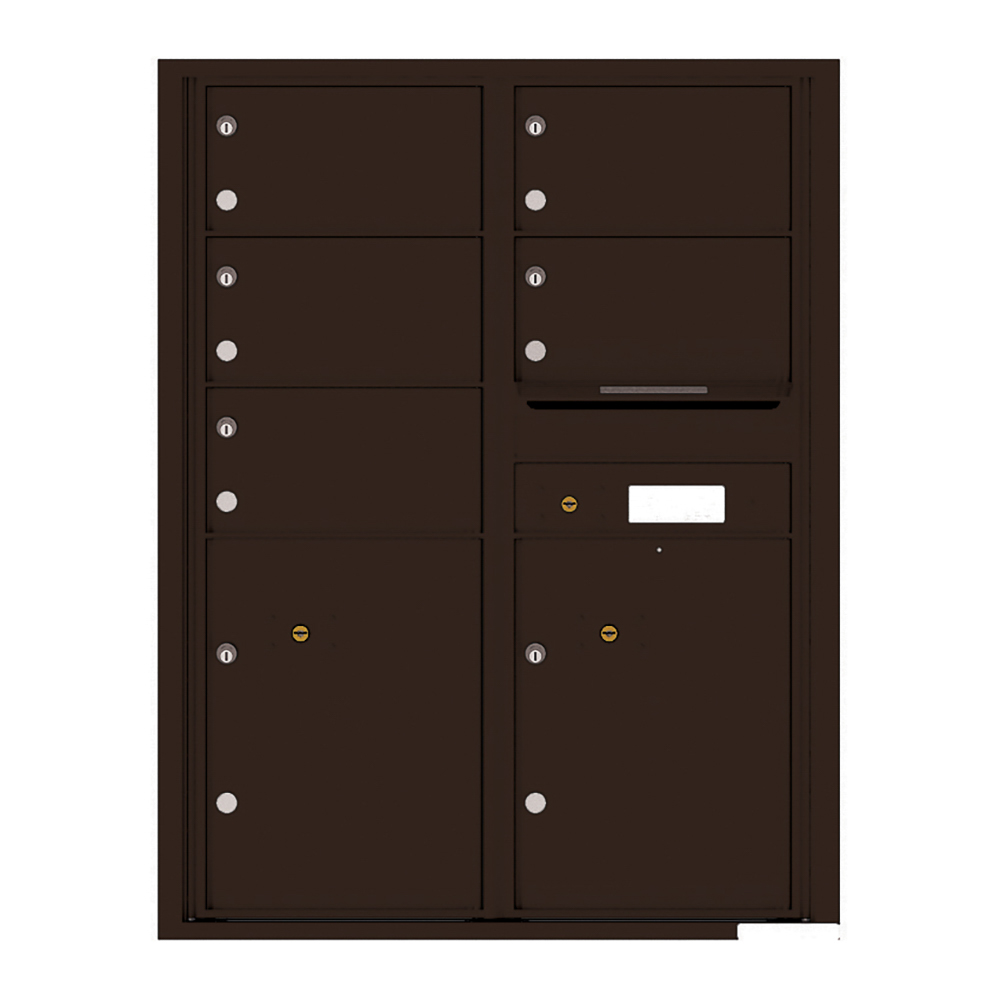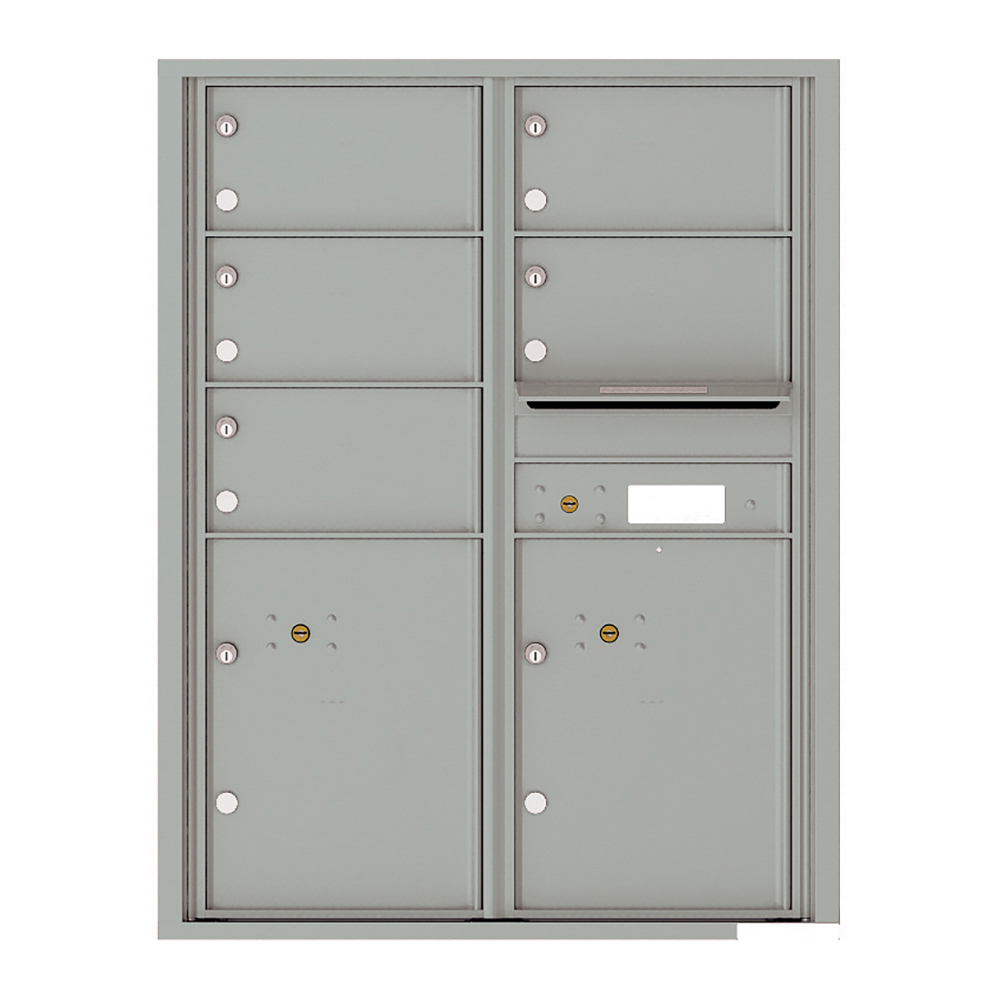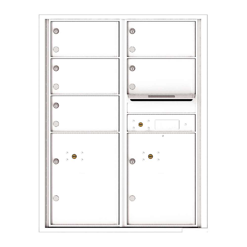 This 4C versatile™ mailbox from US Mail Supply holds five oversized tenant slots and two parcel lockers, perfect for an apartment, army base, large office building, or campus dormitory. Easily mounted on any indoor wall, eleven-door high five tenant 4C horizontal mailboxes feature five double-high (6.5” high) tenant doors, two extra-large (17″ high) parcel lockers, and one outgoing mail slot. The 4C locking pre-USPS approved mailbox is available in front loading style only.
