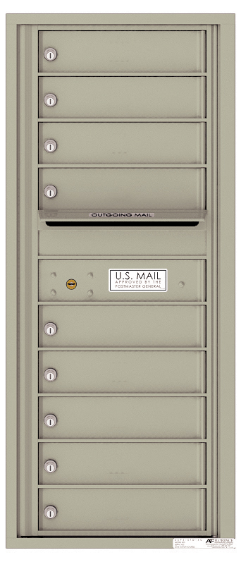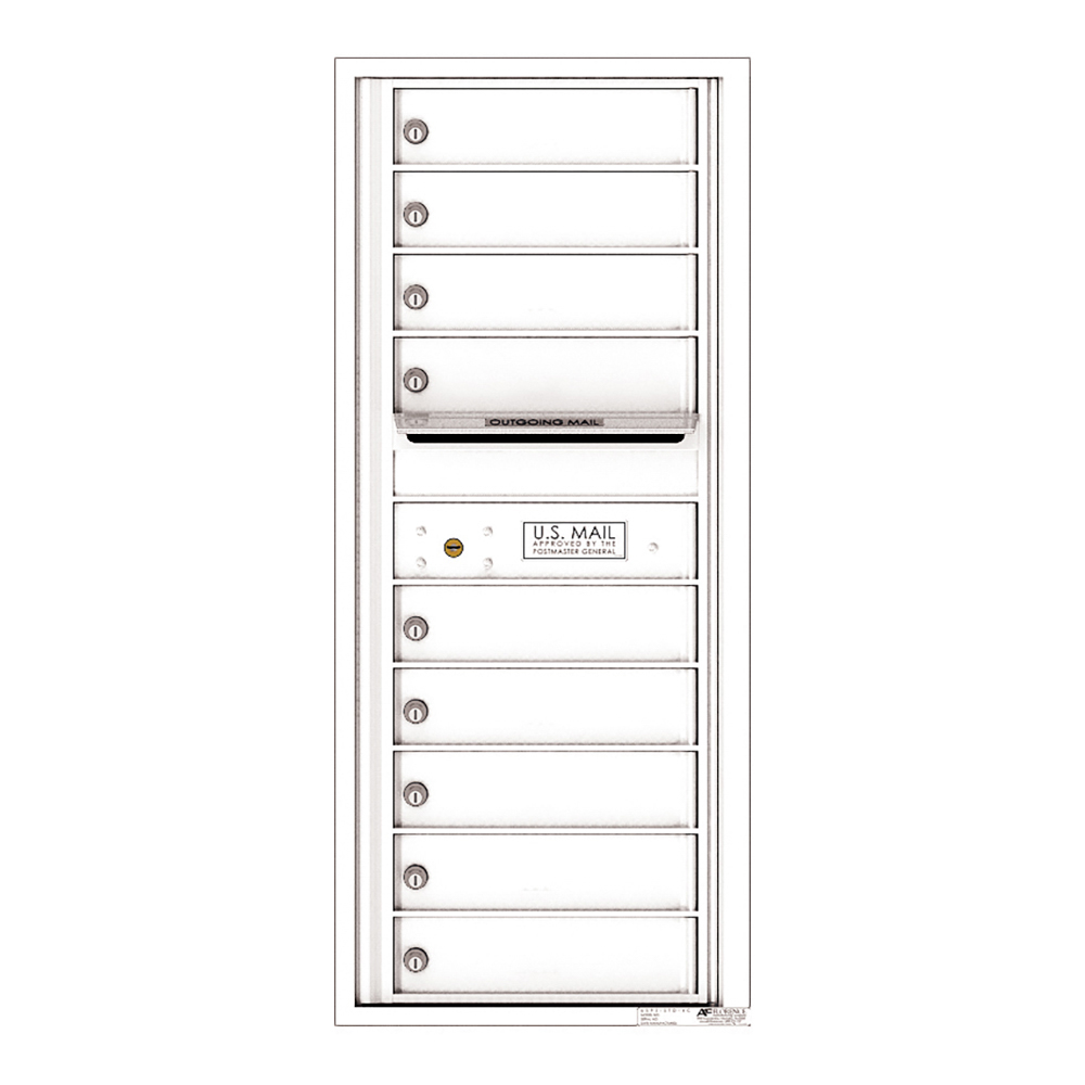 This 4C versatile™ mailbox from US Mail Supply holds nine tenant slots, perfect for an apartment, army base, large office building, or campus dormitory. Easily mounted on any indoor wall, eleven-door high nine tenant 4C horizontal mailboxes feature nine standard size (3.25” high) tenant doors and one outgoing mail slot. The 4C locking mailbox is available in front loading style only.