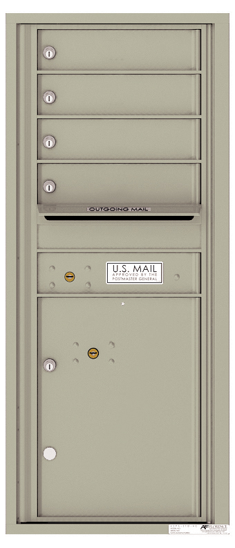 This 4C versatile™ mailbox from US Mail Supply holds nine tenant slots and one parcel locker, perfect for an apartment, army base, large office building, or campus dormitory. Easily mounted on any indoor wall, eleven-door high four tenant 4C horizontal mailboxes feature four standard size (3.25” high) tenant doors, one extra-large (17" high) parcel locker, and one outgoing mail slot. The 4C locking pre-USPS approved mailbox is available in front loading style only.