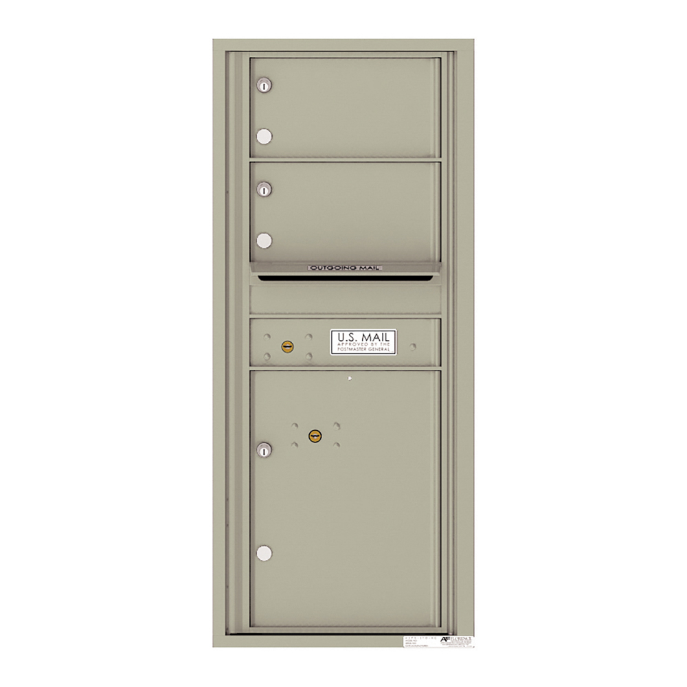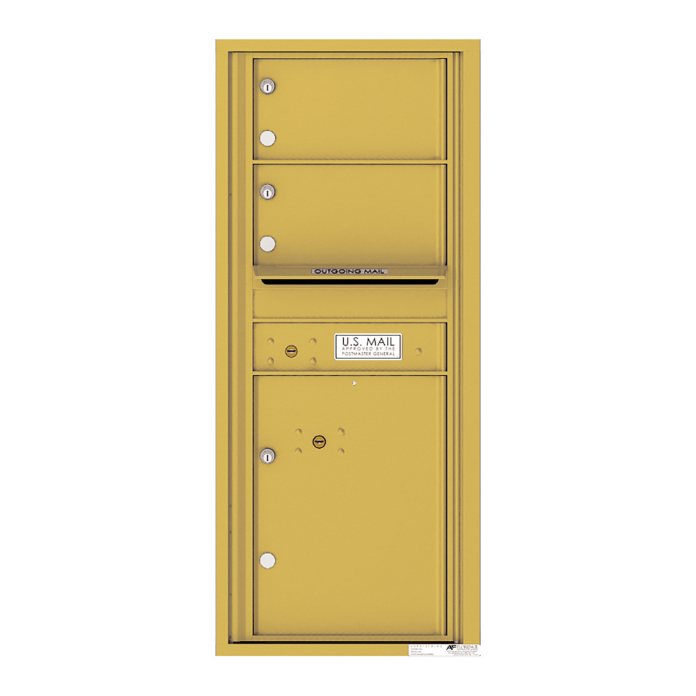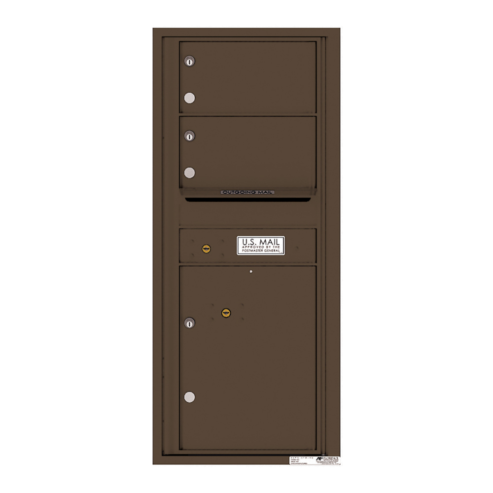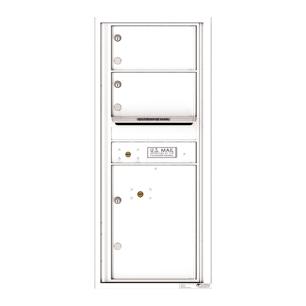 This 4C versatile™ mailbox from US Mail Supply holds two oversized tenant slots and one parcel locker, perfect for an apartment, army base, large office building, or campus dormitory. Easily mounted on any indoor wall, eleven-door high two tenant 4C horizontal mailboxes feature two double-high (6.5” high) tenant doors, one extra-large (17″ high) parcel locker, and one outgoing mail slot. The 4C locking pre-USPS approved mailbox is available in front loading style only.