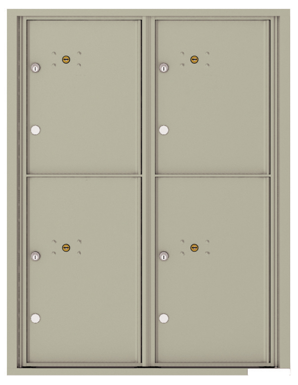 This model of the eleven door high 4C versatile™ mailbox from US Mail Supply contains four parcel lockers, perfect for any apartment, military base, or office building. 11 door high four parcel 4C horizontal mailboxes feature two extra-large (17” high) and two oversized (20.5” high) parcel lockers. The 4C locking pre-USPS approved mailbox is available in front loading style only.