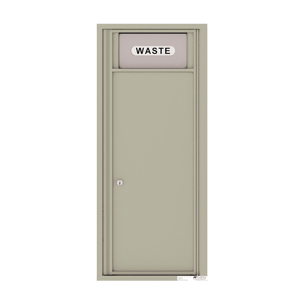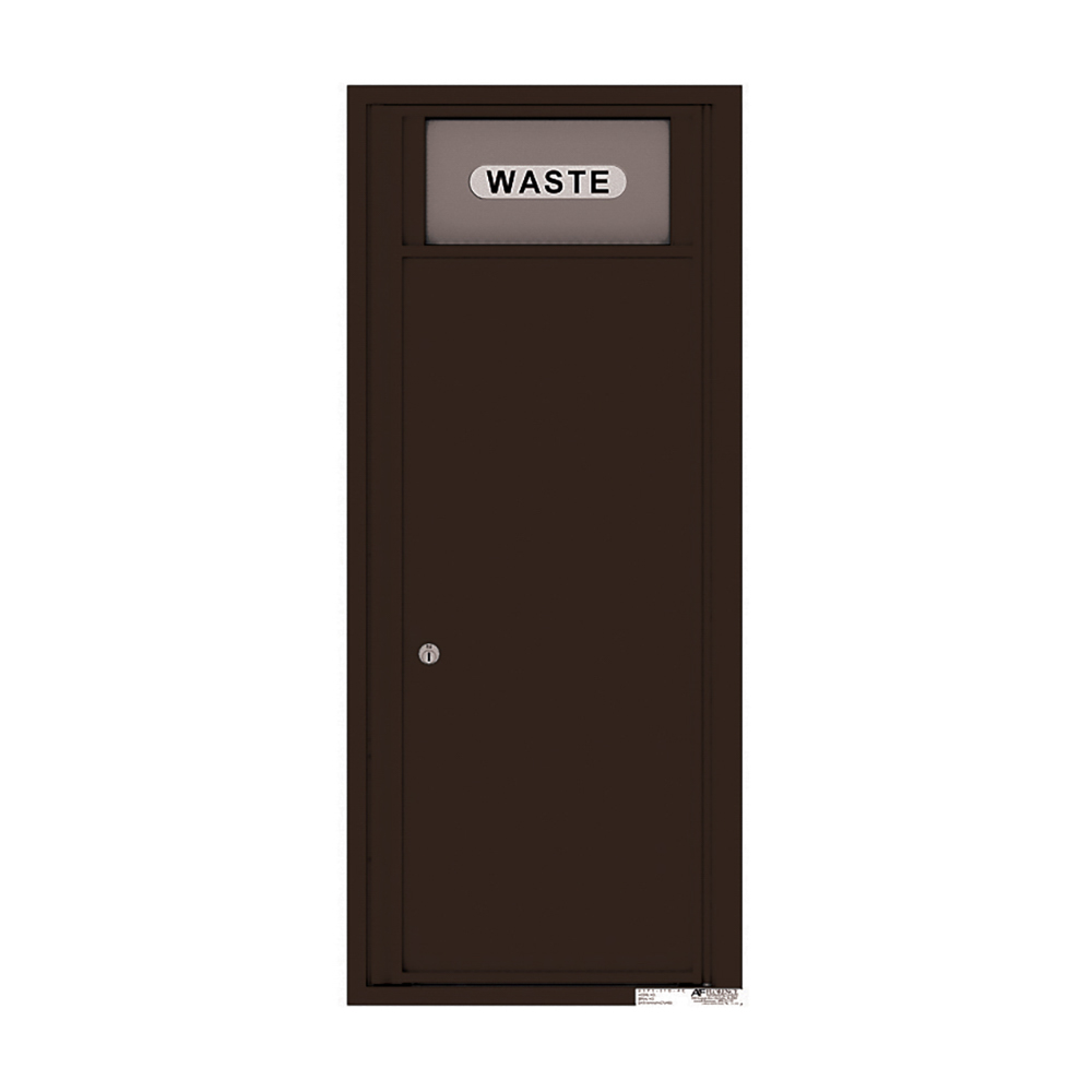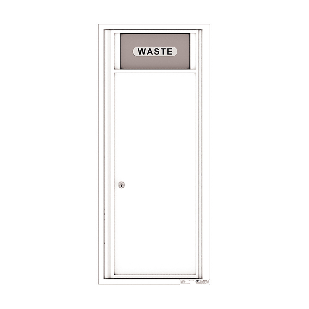 - Choose from a variety of door flap decals to suit your needs, such as “WASTE”, “PAPER”, “PLASTIC”, “GLASS”, “TRASH” or custom (up to 12 characters) – all at no extra charge. Door flap comes standard in brushed stainless steel, or may be powdercoated to match the bin’s exterior