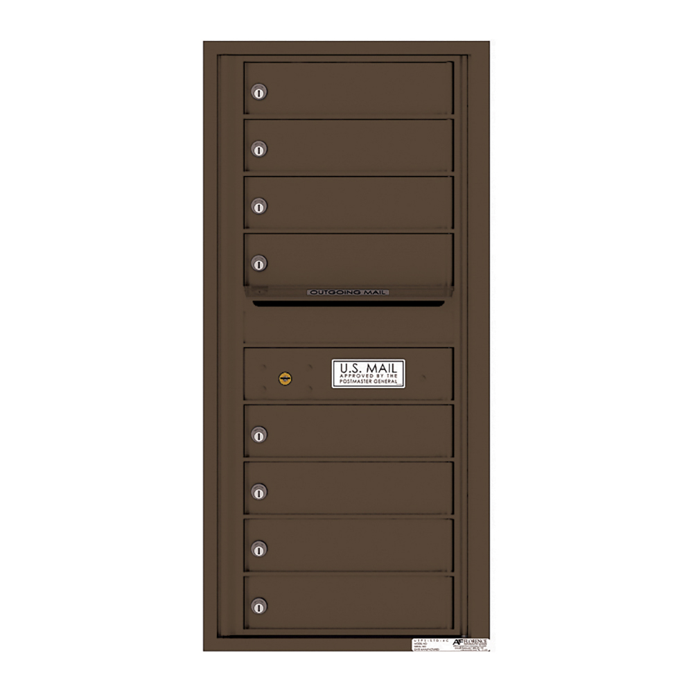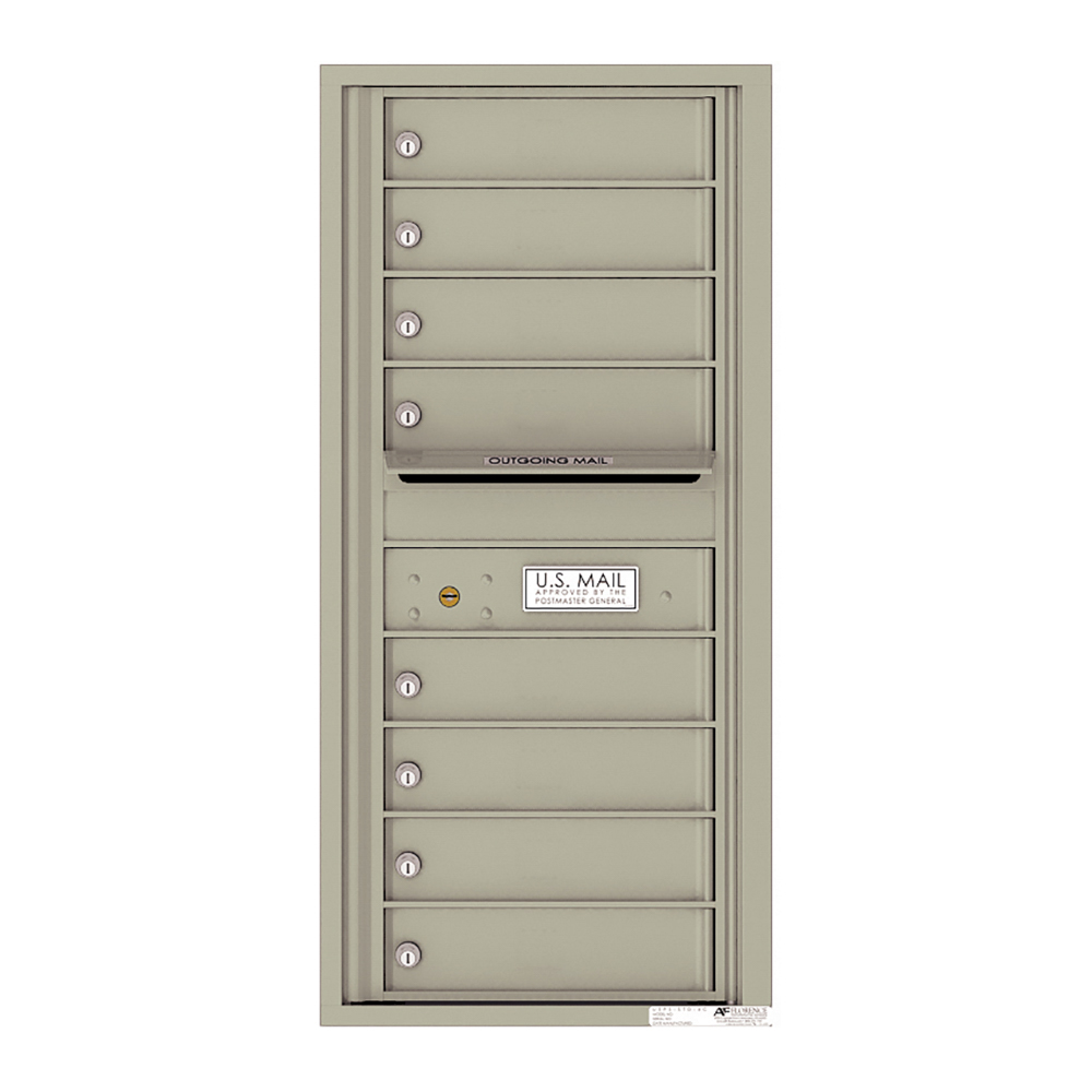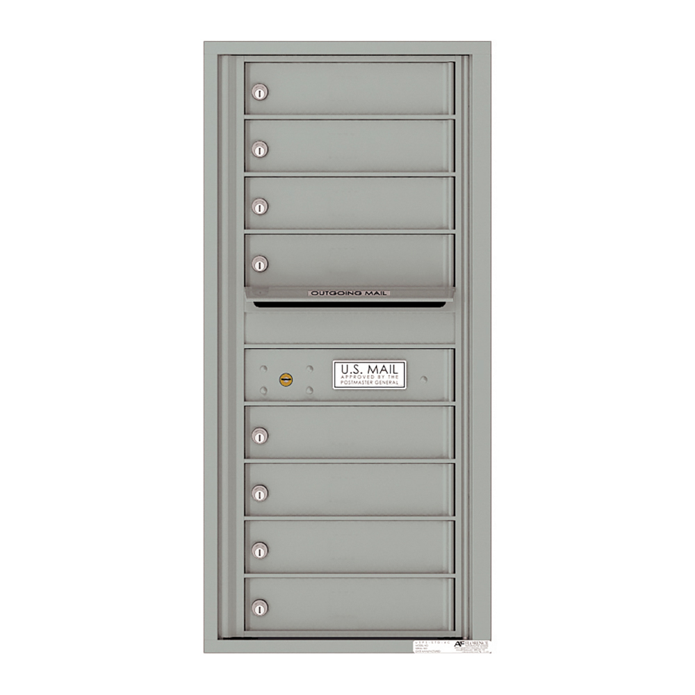 Easily mounted on any indoor wall, ten-door high eight tenant 4C horizontal mailboxes feature eight standard size (3.25” high) tenant doors and one outgoing mail slot.