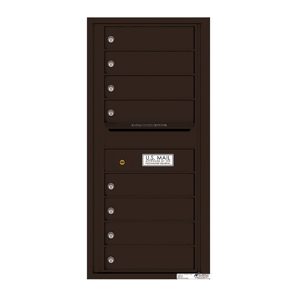 This 4C Versatile ™ mailbox from US Mail Supply holds eight tenant slots, perfect for an apartment, army base, office building, or campus dormitory.