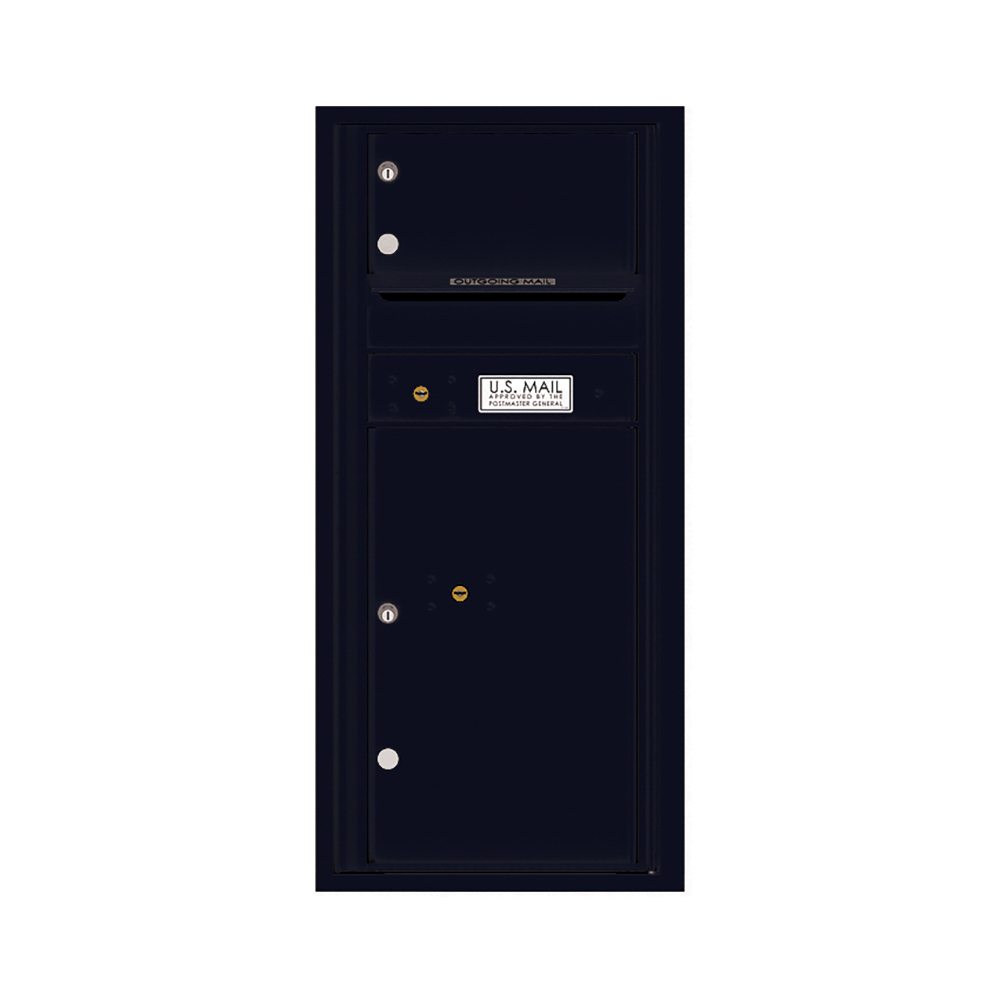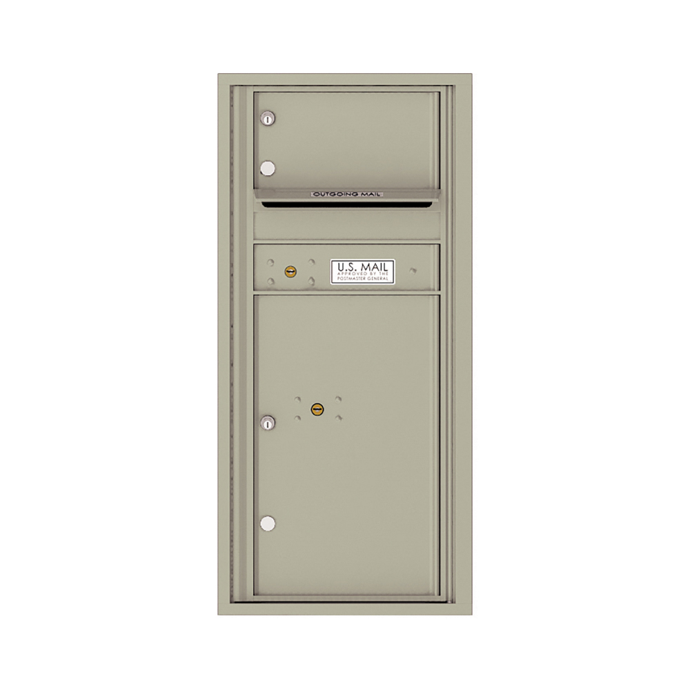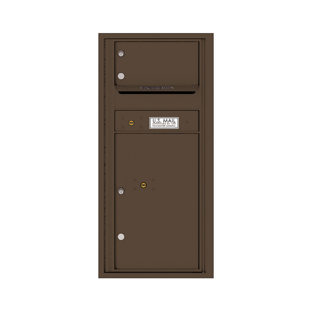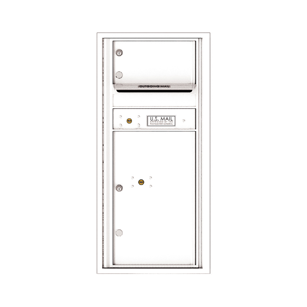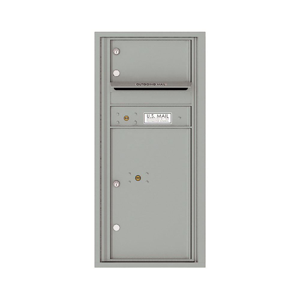 ADA compliant one-tenant 4C horizontal mailboxes feature one oversized (6.5” high) tenant door, one oversized (20.5” high) parcel locker, and one outgoing mail slot.