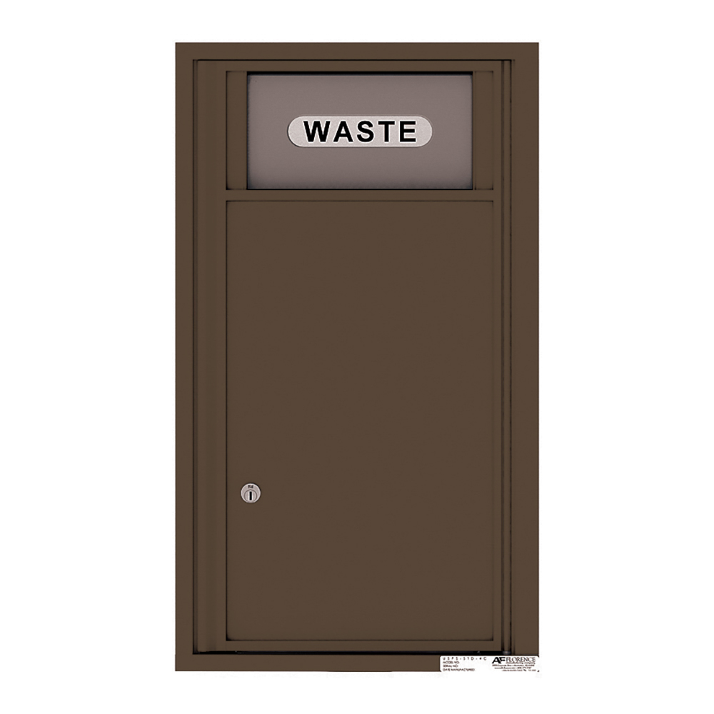 • The door flap comes standard in brushed stainless steel or powder-coated to match the bin’s exterior