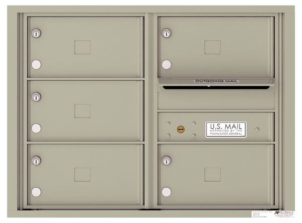 Make your commercial or residential mail center the best it can be with the secure, stylish and 4C 5 Tenant Mailbox 4C06D-05X. It features five spacious, double-sized tenant mailboxes and an outgoing mail compartment, making it effective by itself or alongside other 4C Horizontal Mailboxes. This unit is built for security with interlocking and overlapping seams to prevent prying, hefty cam locks on each door, and an anti-fishing comb in the outgoing mail slot. Whether the unit is mounted inside or outside, one of eight durable powder coat finishes will make sure it fits any aesthetic. The 4C Double Column 5 Tenant Mailbox 4C06D-05X comes ready for recessed wall mounting, but a Double Column Surface Mount Collar will enable it to be mounted on any standard wall.