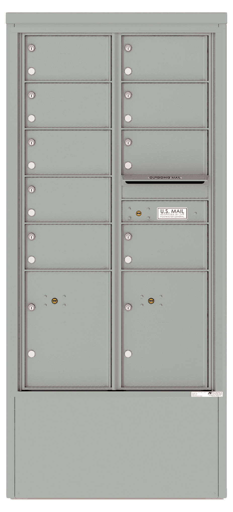 Featuring nine double-high tenant doors, two extra-large parcel locker, the 4C mailbox from US Mail Supply is perfect for military bases, college campuses, or apartment complexes.