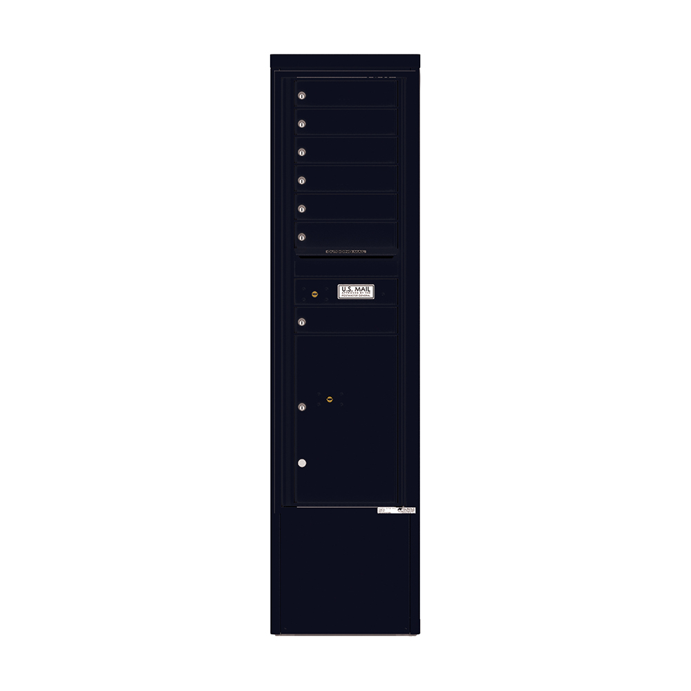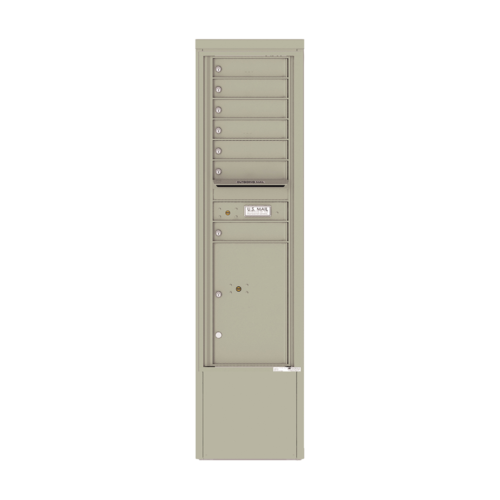 This single stack seven-tenant 4C Horizontal Depot mailbox with oversized (20.5” high) parcel locker is perfect for private use on college campuses, military bases, and other similar properties.