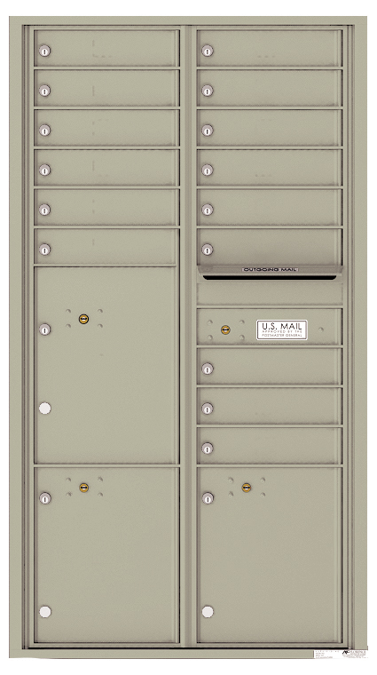 Nineteen tenant front loading 4C versatile™ mailboxes from US Mail Supply are USPS approved for use in multi-unit apartment buildings or commercial properties.